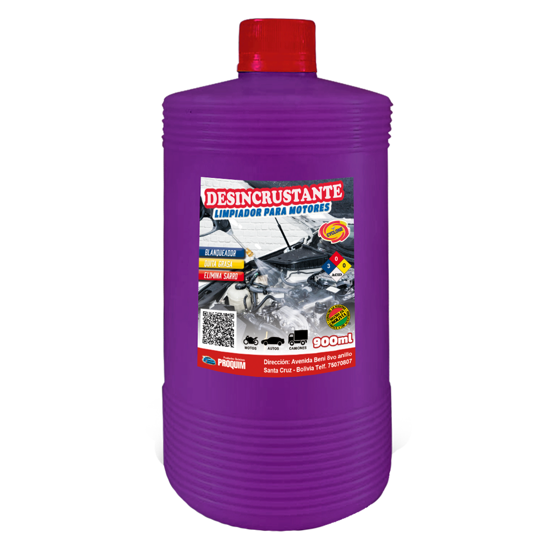remueve de impurezas e incrustaciones adheridas a las superficies de los componentes del motor y chasis, elimina rápidamente el sarro, oxido, manchas de aceite y grasa en  cualquier superficie metálica.